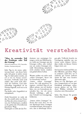 Jeder Tag ist ein neues, unbe- nicht schaden kann), sondern Ein kreativer Lebensstil lebt aus