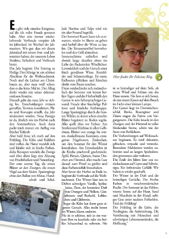 Danach geht das neue Jahr so rich- Garten in sein farbenprächtiges Ge- als mit einem Kissen auf dem Bauch