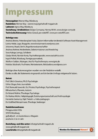 Leserbriefe: info@gehaltvoll-magazin.de Werden Sie Abonnent: Warum?